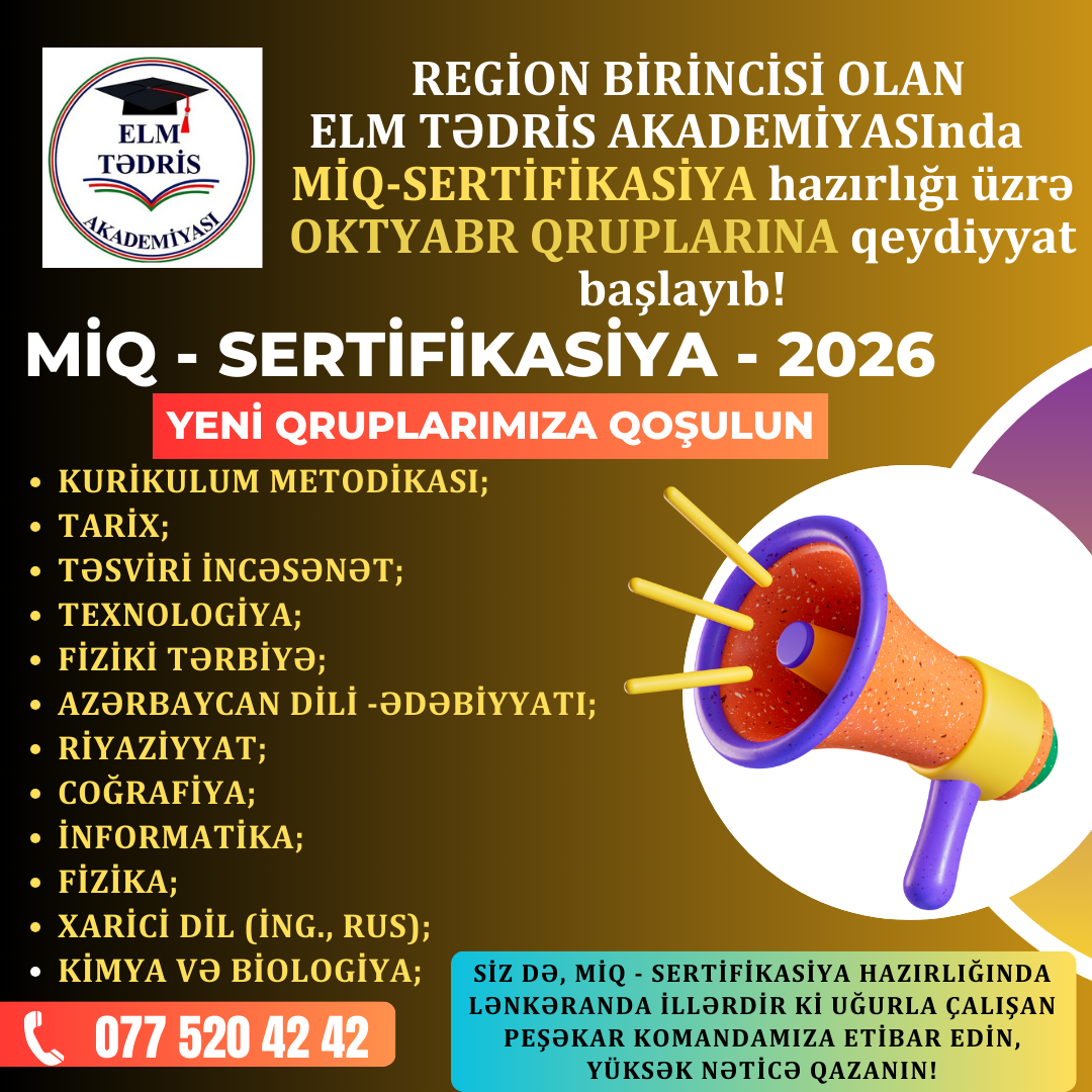 MİQ-SERTİFİKASİYA 2026 qruplarımıza qeydiyyat davam edir